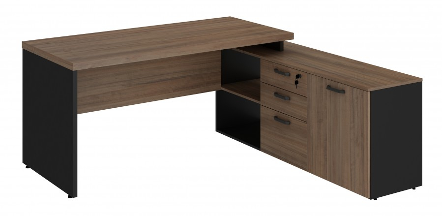 Apoiada em armário com 1 porta, 2 gavetas e 1 pasta.