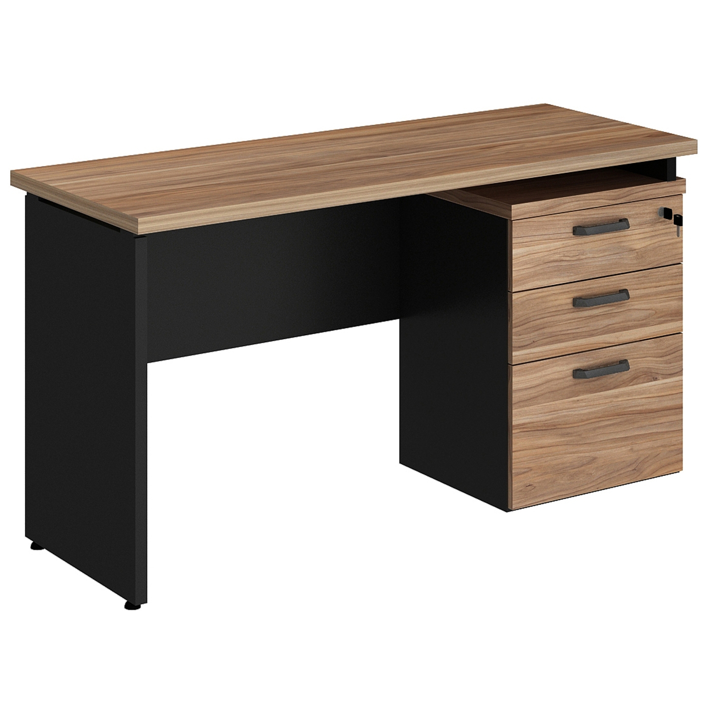 Mesa retangular dinâmica e extensível, com gaveteiro pedestal;